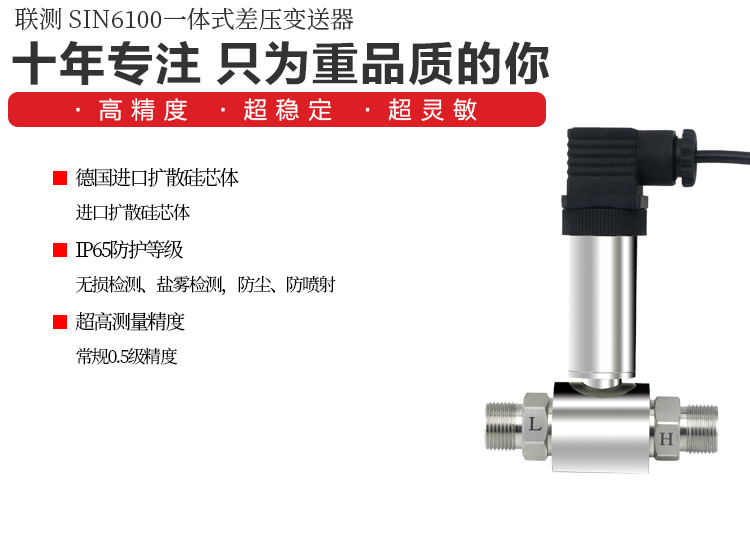SIN-6100系列一體化差壓變送器采用OEM硅壓阻式差壓充油芯體組裝而成。外殼為全不銹鋼結(jié)構(gòu),兩個壓力接口為螺紋連接,可直接安裝在測量管道上或通過引壓管連接。