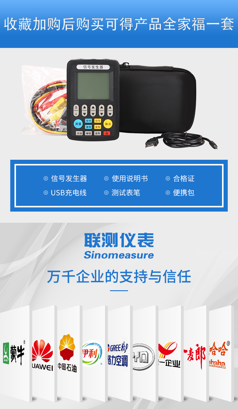 信號發(fā)生器具有多種信號的測量和輸出功能,包括電壓、電流、熱電偶,采用高清LCD液晶屏和功能分明的硅膠按鍵,操作簡單,待機(jī)時(shí)間長,精度高,并且具有可編程輸出的功能。