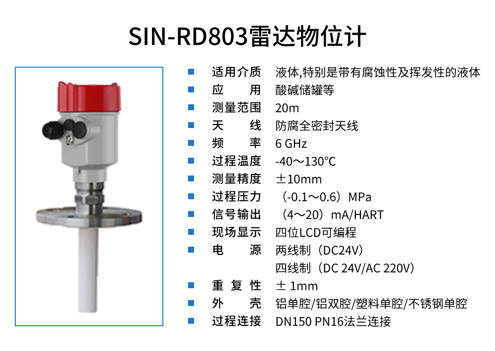 您的位置: 首頁 > 雷達液位計 >SIN-RD803T雷達物位計_適用于帶有腐蝕性及揮發(fā)性的液體_