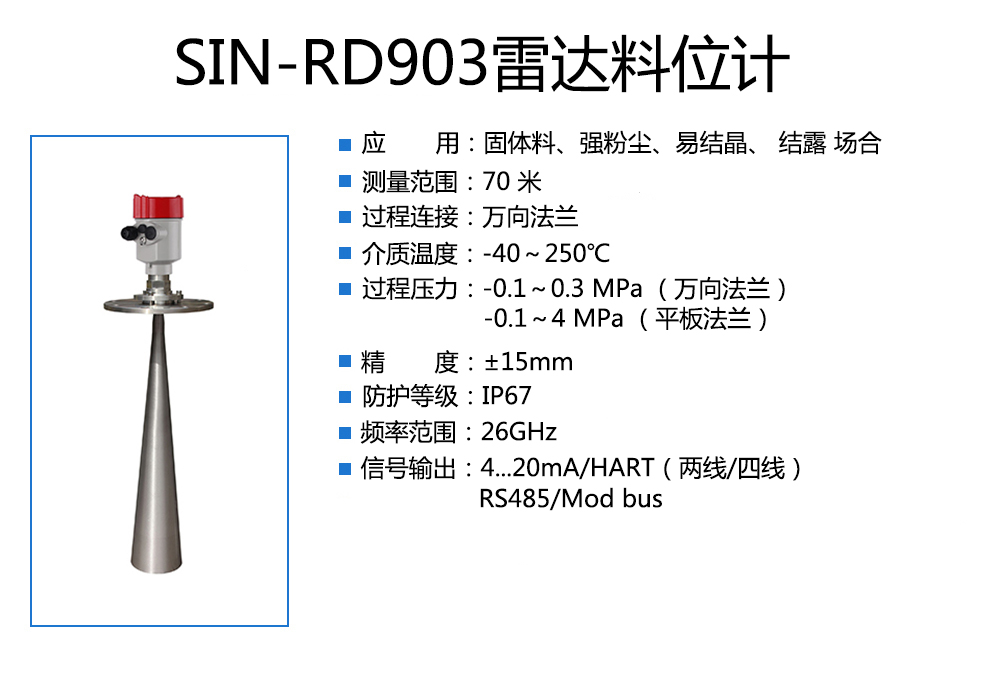 90 系列傳感器是 26G 高頻雷達(dá)式物位測量儀表,測量最大距離可達(dá) 80 米。