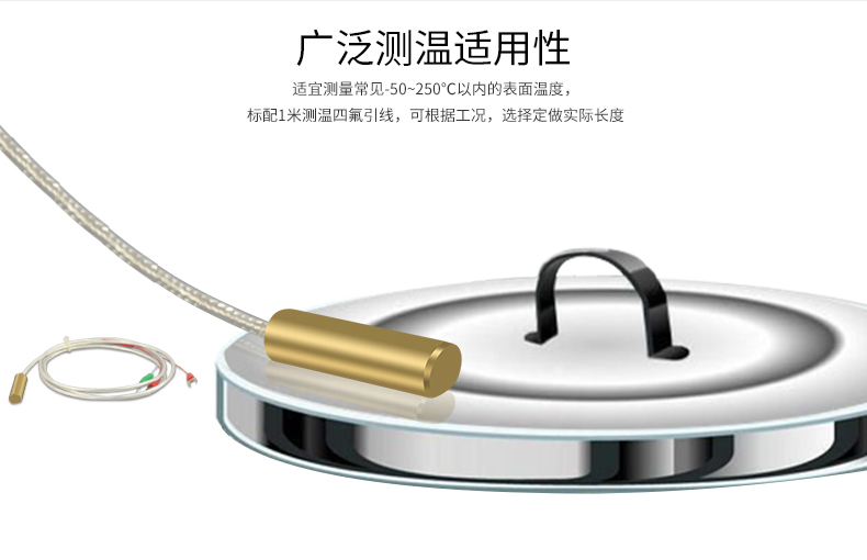 貼片式溫度傳感器主要用于測(cè)量物體表面的溫度,貼片式溫度傳感器通過(guò)螺釘或其它固定方式將傳感器貼在物體表面,實(shí)現(xiàn)較理想的測(cè)溫效果。
