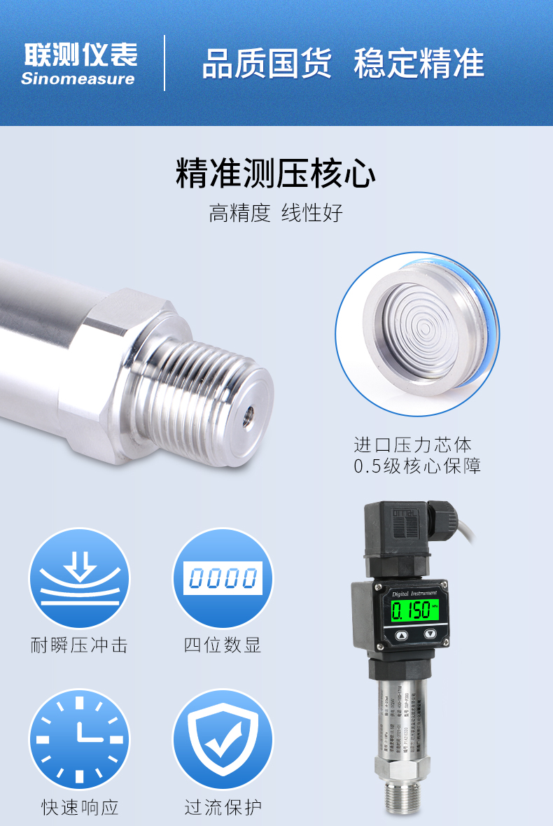 SIN-PX300型數(shù)顯壓力變送器采用無縫焊接結(jié)構(gòu),可批量化生產(chǎn),經(jīng)濟、可靠,具有良好的適應(yīng)性,可應(yīng)用于各種復(fù)雜的環(huán)境,該產(chǎn)品輸出形式多樣,壓力接口可提供定制,滿足您的使用需求。同時數(shù)顯壓力變送器帶有現(xiàn)場顯示功能,能夠更加直觀的顯示現(xiàn)場的壓力波動情況。廣泛應(yīng)用于工業(yè)自動化設(shè)備配套以及石油、化工、冶金、電力等控制領(lǐng)域。