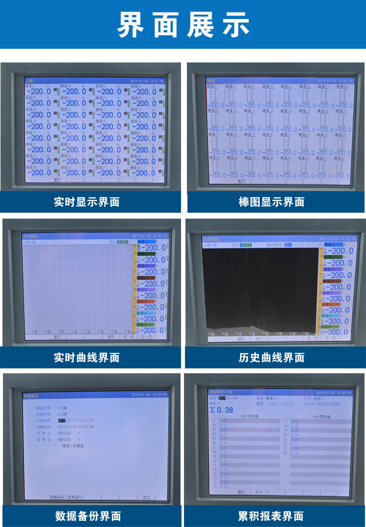 無紙記錄儀是將采集的數(shù)據(jù)/運算數(shù)據(jù)以時間為基軸記錄在儀器內(nèi)部的存儲系統(tǒng)中,無消耗任何常用的記錄設施,如:紙張、筆墨。記錄在儀器內(nèi)部的存儲數(shù)據(jù),通過運算、模擬后顯示在液晶屏。常用顯示用液晶屏比較廣泛。在液晶屏屏幕上,可以顯示數(shù)字顯示、棒圖顯示、曲線顯示、報警列表等。無紙記錄儀采集的數(shù)據(jù),常用的有:溫度、壓力、流量、液位、電壓、電流、濕度、頻率、振動、轉速等。