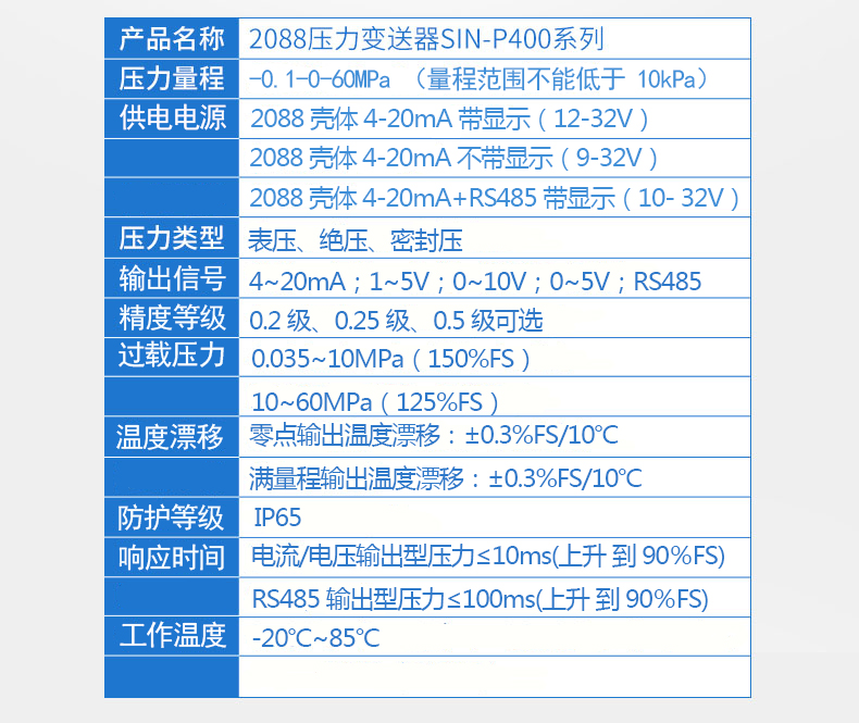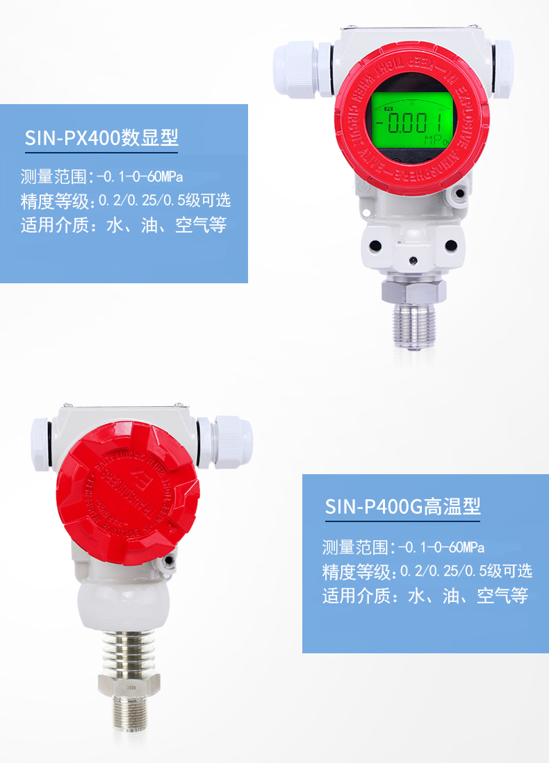 SIN-P400壓力變送器,采用全數(shù)字電路板,做到用戶可在一定范圍內自行現(xiàn)場修改量程,極大的方便了現(xiàn)場使用。
