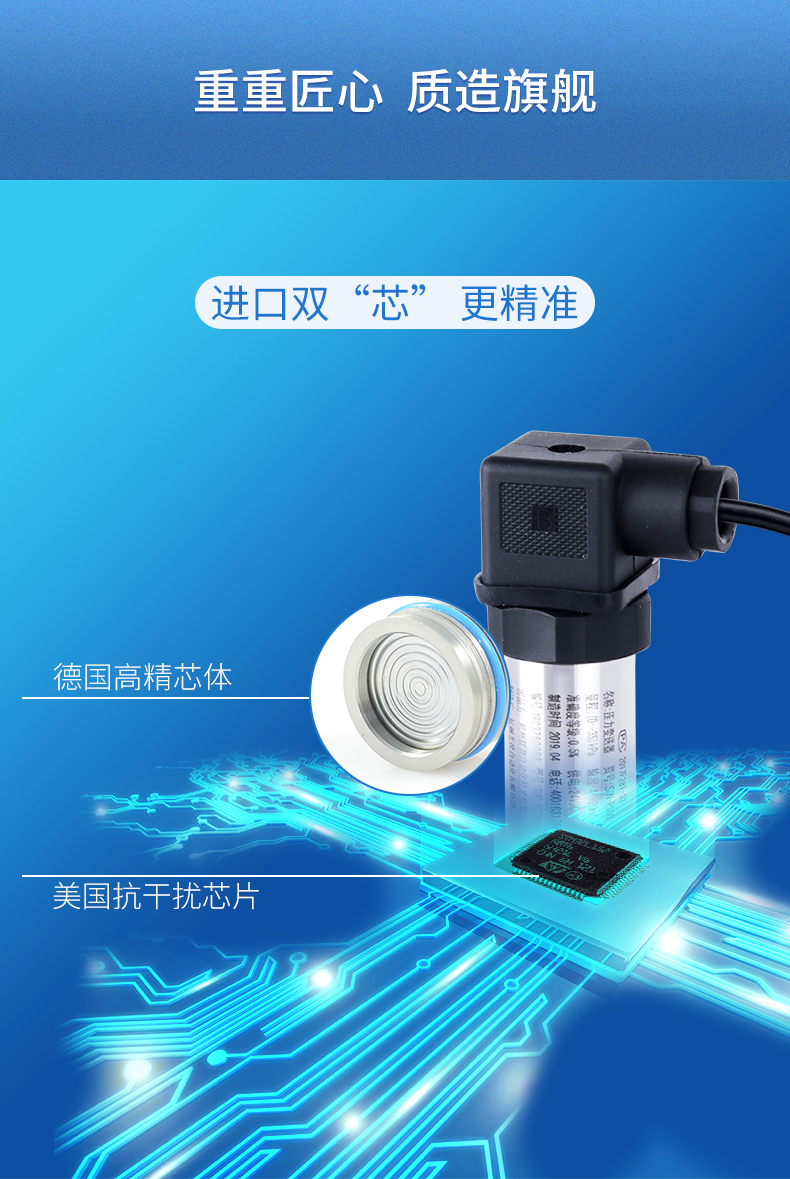 SIN-P300通用型壓力變送器德國進(jìn)口硅芯片,精度高性能穩(wěn)定;SIN-P300型通用型壓力變送器采用擴(kuò)散硅壓力芯體作為敏感元件,內(nèi)置處理電路將傳感器毫伏信號(hào)轉(zhuǎn)換成標(biāo)準(zhǔn)電壓﹑電流信號(hào)輸出,可直接與計(jì)算機(jī)、控制儀表﹑顯示儀表等相連。選用高穩(wěn)定性和高可靠性的壓阻式壓力傳感器和高性能的變送器專用電路,整體性能穩(wěn)定可靠,可進(jìn)行遠(yuǎn)距離信號(hào)傳輸。采用一體化全不銹鋼結(jié)構(gòu),經(jīng)過多次不銹鋼焊接,實(shí)現(xiàn)了全固態(tài)設(shè)計(jì),安裝方便,具有高抗振性和抗沖擊性,在惡劣環(huán)境中可以長期使用。廣泛應(yīng)用于工業(yè)自動(dòng)化設(shè)備配套以及石油、化工、冶金、電力等控制領(lǐng)域。
